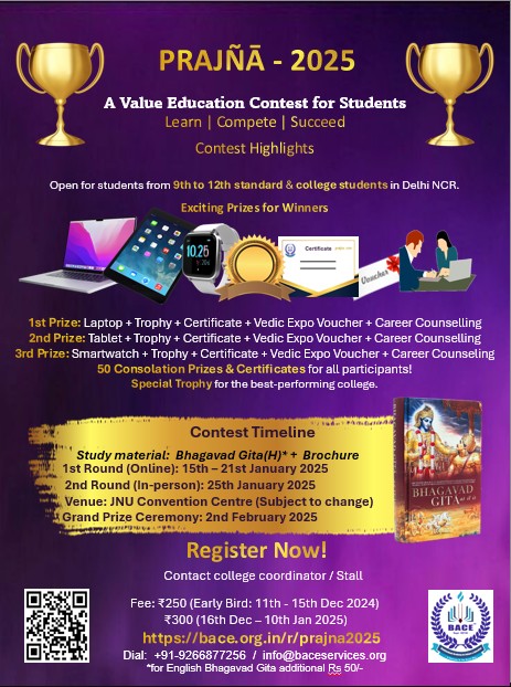 Bhaktivedanta Academy for Culture and Education (BACE) is a non-profit initiative by alumni of prestigious colleges like IIT, NIT and working professionals to help India move a step towards its vision for becoming a developed country by empowering the young generation through comprehensive value education programs. The members of BACE team strive to carry the following core values in their effort to shape the better future of the society.